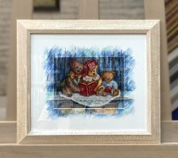 - Художественная дорисовка по паспарту: Добавление дополнительных элементов рисунка или декоративных деталей на паспарту (рамку вокруг вышивки) делает серийную вышивку более интересной и индивидуальной.